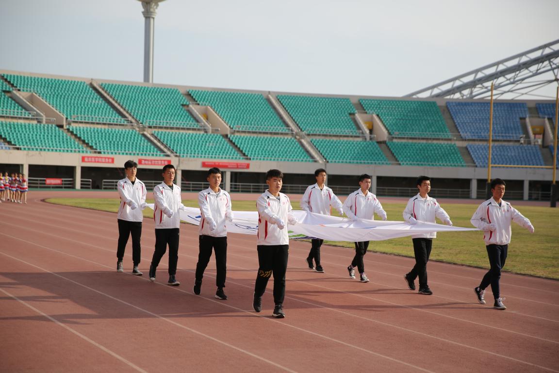 19日上午7点30分,烟台市体育公园主体育场内彩旗飘扬,人潮涌动。在校校领导车先礼、王滨、李文喜、白咸勇、张宗伟、吕长俊、黄飞在主席台就座。伴随着激昂的《运动员进行曲》,国旗方队、会徽方队、花束方队、彩旗方队、裁判员方队及13支代表队方队意气风发、昂首阔步进入运动场。在庄严的国歌声中,全体人员起立,鲜艳的五星红旗在体育场冉冉升起。