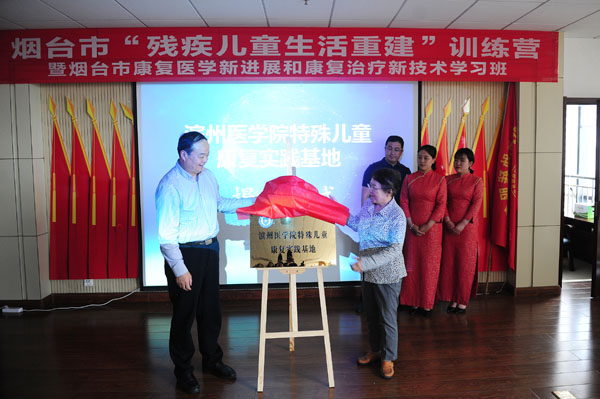 许晓鸣、车先礼为“滨州医学院特殊儿童康复实践基地”揭牌
