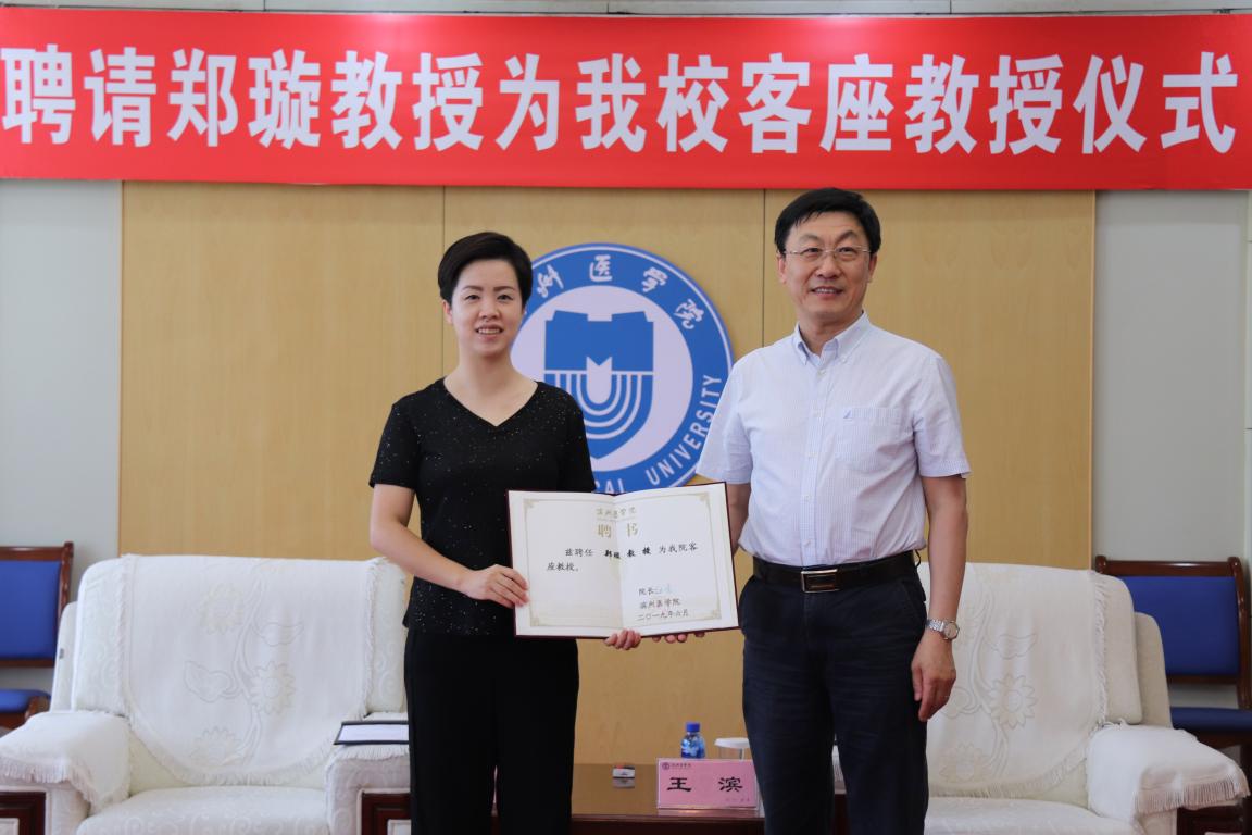 王滨首先向郑璇教授介绍了学校的发展规划及目前的科研现状,特别是我校特殊教育和康复医学专业的发展状况,重点与郑璇教授就学校与重庆师范大学的合作、学科建设等进行了深入交流。郑璇教授表示很荣幸获聘我校客座教授,对自己的工作进行了详细介绍并对双方的合作方式、团队建设等进行了说明,表示未来工作中努力为滨州医学院的发展做出应有的贡献。