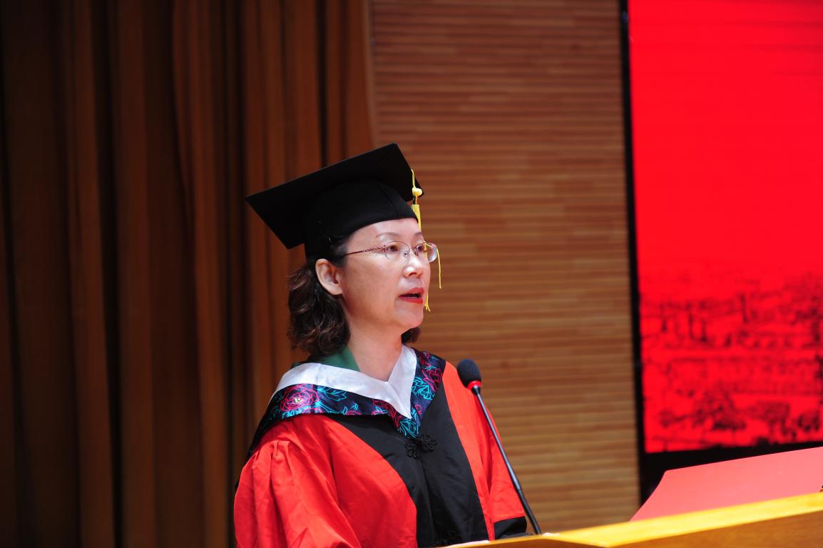 王滨在讲话中代表学校向圆满完成学业的全体硕士研究生表示热烈的祝贺,向全体导师以及为研究生培养工作做出贡献的教职员工表示衷心的感谢,向关心和支持研究生学习的父母及家人致以诚挚的敬意,对即将毕业的研究生同学们提出殷切期望。一要胸怀大志,心系天下,要把自己的成长成才,融入到国家的进步和民族的振兴之中,勇于突破专业的藩篱和岗位的局限,善于跨学科思考、跨领域联通、跨界点创新、跨文化交流;二要勇挑重担,挑战极限,带头力争做开拓者、奉献者,在未来的工作岗位上,不忘初心,勇挑重担,挑战极限,行稳致远,在平凡中做出不平凡;三要勤于钻研,勇于创新,在工作中结合实践,聚焦重大疾病防控、食品药品安全、人口老龄化等重大民生问题,助力健康中国的实现,助力新旧动能转换。