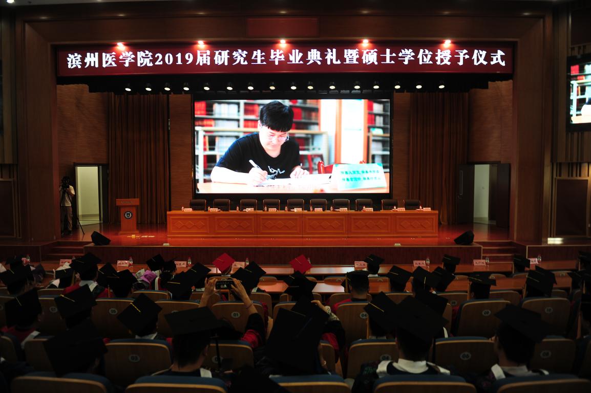 典礼上,副院长吕长俊宣读《滨州医学院学位评定委员会关于授予2019届研究生硕士学位的通知》,副院长王广成宣读《滨州医学院关于表彰2019届优秀毕业生的通报》。学校领导为2019届硕士研究生授予学位并颁发学位证书,为省级优秀毕业生、校级优秀毕业生颁发荣誉证书和研究生校友卡。研究生导师代表宋晓冬、毕业生代表蒋梦琪上台发言。