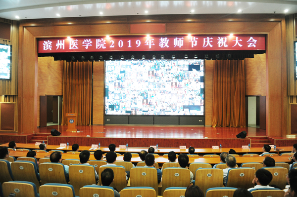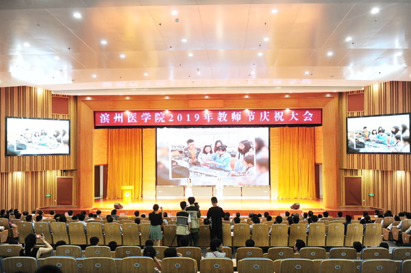 大会在庄严的国歌声中正式开始。副院长白咸勇主持大会。副院长王广成宣读表彰通报。会前,在校学生罗胰丹、胡雪嫚深情演唱歌曲《老师好》,用真挚的情感唱出了对老师深情的节日祝福。会人员一同观看了《庆祝新中国七十华诞,弘扬新时代尊师风尚》2019年教师节主题视频。会上,学校为2018年9月-2019年8月退休的教职工举行光荣退休仪式,对2019年教龄满30周年的教职工,获得省级各类荣誉称号教师、滨州医学院2018年度优秀教师、2018年度先进工作者、2018年度优秀辅导员进行了表彰。山东省优秀教师韩锋产教授,学生代表、临床医学院于天豪分别发言。