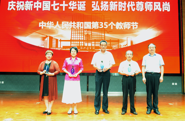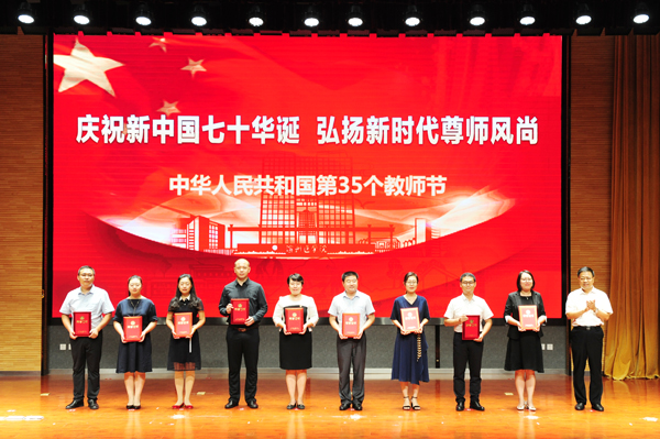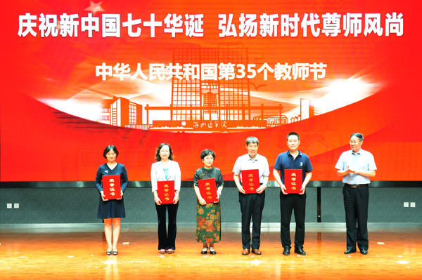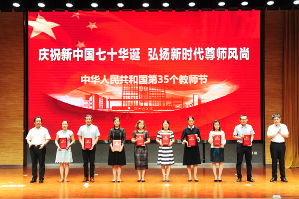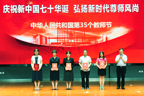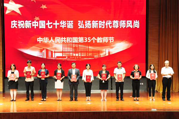 他指出,今年教师节的主题是“庆祝新中国七十华诞,弘扬新时代尊师风尚。”这既是国家庆祝教师节的活动安排,也是高度重视师资队伍建设的重要举措。学校将更加重视人才师资队伍建设,积极构建完善与现代大学相适应的人力资源管理体制机制,充分调动和激发每位教职工激情与活力,着力打造一支师德高尚、业务精湛、结构合理、充满活力的高素质教师队伍,为学校事业发展奠定坚实的人才保障、人力支撑和智力支持。