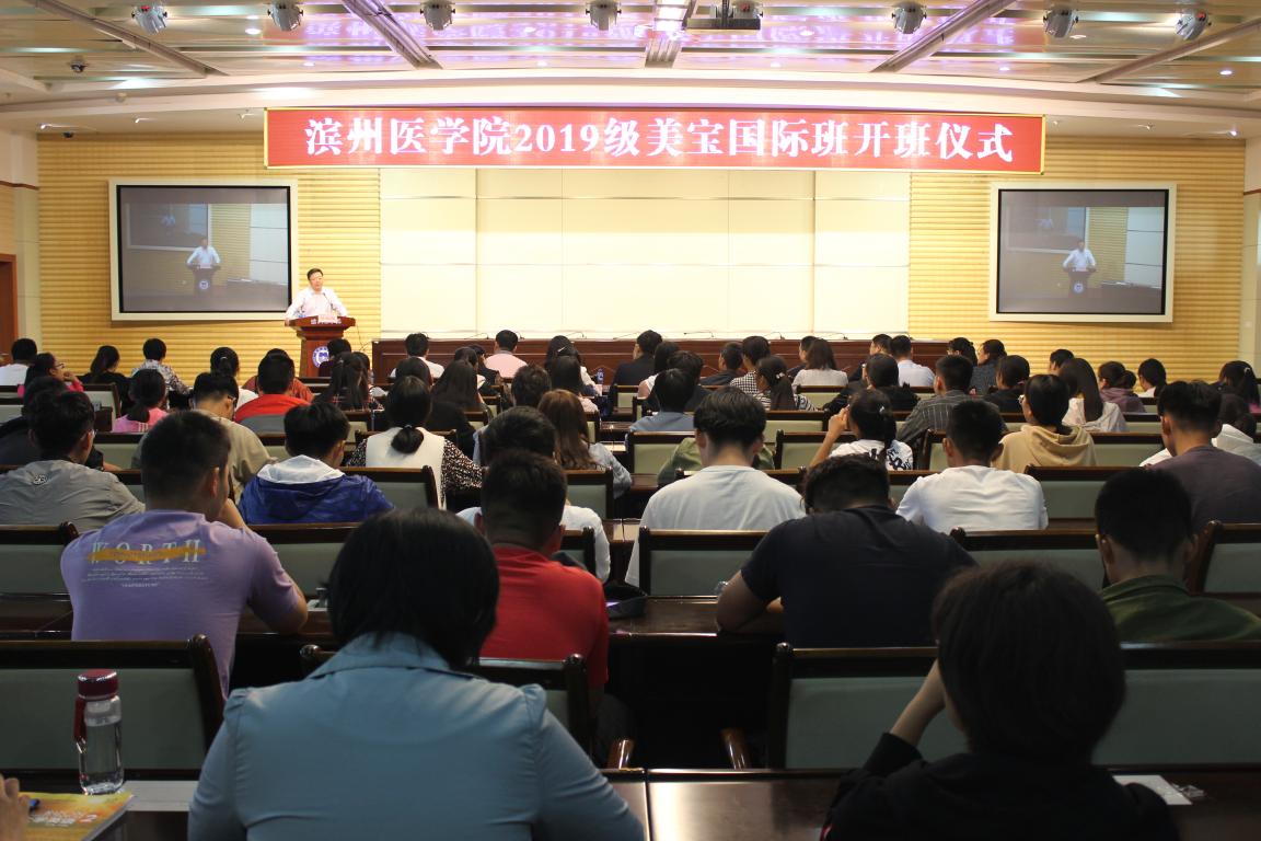 9月21日上午,学校在办公楼六楼报告厅举行2019级美宝国际班开班仪式。副院长吕长俊、美宝集团总裁杨智斌、美宝集团医疗专家王洪生、美宝再生科学学院执行院长栾永新等出席开班仪式。相关部门负责人及临床医学院、护理学院、药学院美宝班全体学生参加仪式。