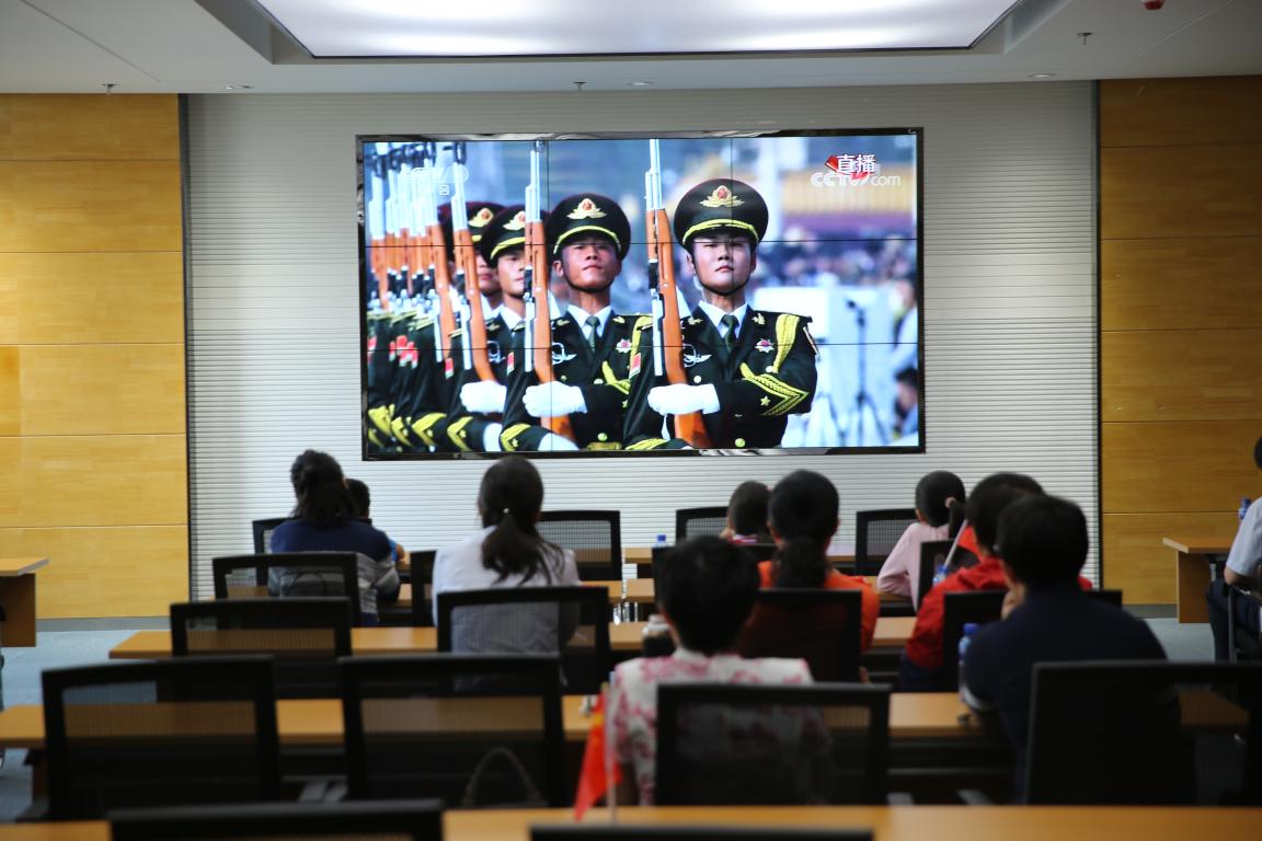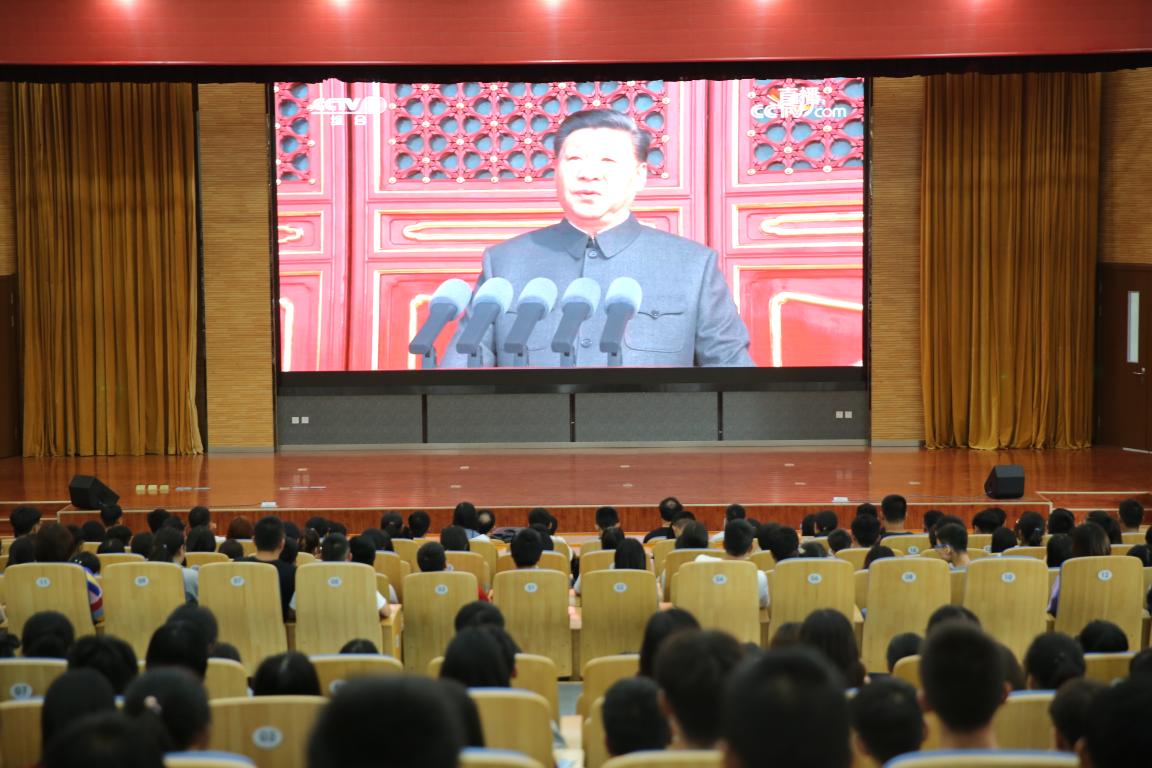 国庆佳节,中华大地万众欢腾,首都北京繁花似锦。10月1日上午10时,庆祝新中国成立70周年大会在天安门广场举行,中共中央总书记、国家主席、中央军委主席习近平检阅受阅部队。学校荣祥楼一楼学术报告厅门庭若市,人头攒动,六百余名在校师生齐聚一堂,组织并集中观看了庆祝新中国成立70周年大会、阅兵式和群众游行实况,共同见证这历史性的一刻,并产生强烈反响。