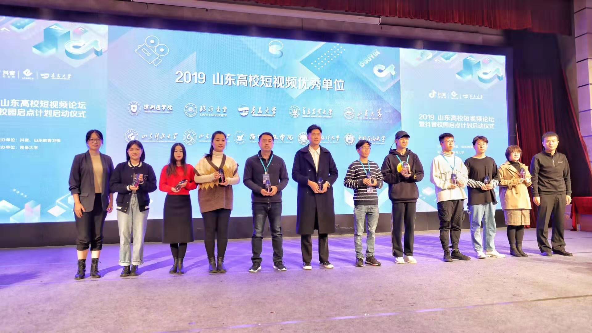 11月17日,由山东教育卫视、抖音主办,青岛大学承办的2019山东高校短视频论坛暨抖音校园启点计划启动仪式在青岛大学举行。我校荣获2019山东高校短视频优秀单位奖。