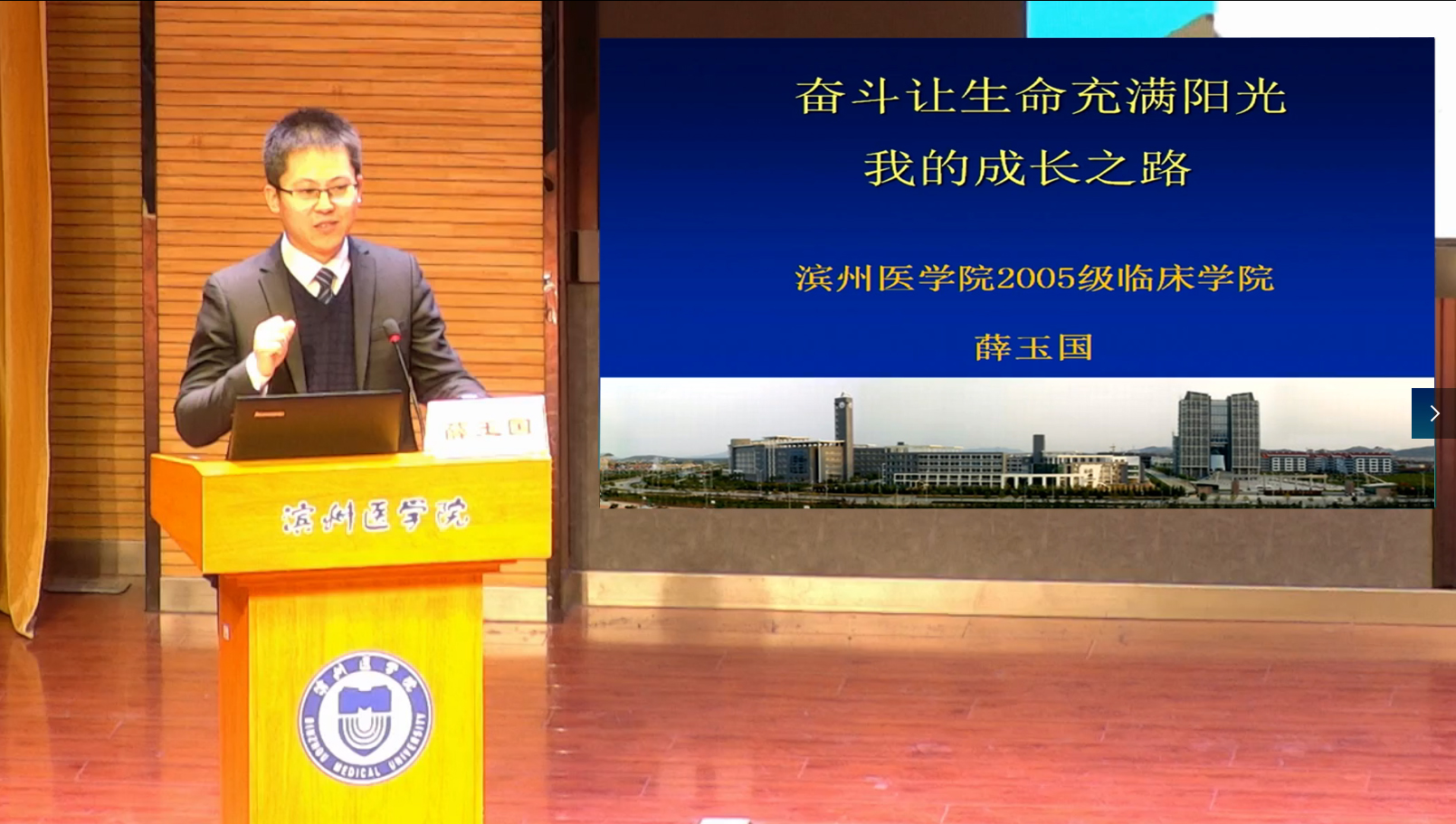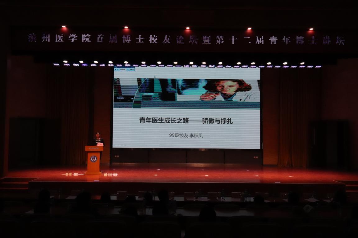 五位优秀校友结合自身专业优势和学科发展前沿,聚焦当前医疗卫生事业关注的重点与难点,先后围绕专业学习、大学生活、求学历程、科研成果等方面做精彩报告。马全红以“在青春闪亮地日子里飞扬”为题,结合自身经历和成长感悟,讲述了自己选择做科研的心路历程和对母校的感恩之情;刘志强以“滨医,我从这里扬帆起航”为题,讲述了自身奋斗历程,出身贫寒的他通过不懈努力实现梦想。他鼓励青年人要敢于有梦,勇于追梦;李积凤围绕“青年医生成长之路:骄傲与挣扎”的主题讲述了骄傲于业内知名度的提高,挣扎于背后无数日夜的辛勤劳作,她选择不做网红,做一个踏踏实实的医教研全面发展的普通医生;朱凤平以“学海无涯勤可渡,书山万仞志能攀”为题,鼓励青年学生要心怀理想,坚定目标,把握机遇,奋斗不息。人生永无止境,要像攀登珠峰一样,克服困难,勇往直前;薛玉国结合自身成长之路,以“奋斗让生命充满阳光”为题,讲到实现梦想唯有通过扎扎实实的努力,要做有心人,干困难事,立大格局,并对母校的培养之恩表达了深深地感谢。整场论坛报告立意新颖,内涵丰富,深入浅出,娓娓道来,具有很强的理论性、创新性和前瞻性,赢得了现场师生的一致好评。