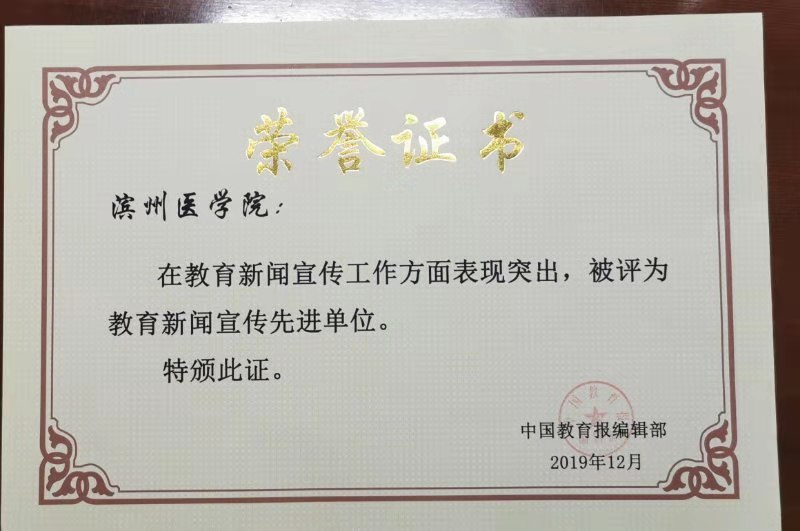 我校喜获中国教育报2019“教育新闻宣传先进单位”,党委宣传部副部长刘芳获“高校教育新闻宣传先进个人”,党委宣传部副部长吕海波以《坚守初心 守正创新 画好滨医事业发展最大同心圆》为题做大会典型经验交流发言;获2019山东教育电视台“山东教育新闻微博MCN机构十大优秀高校”,融媒体中心常静获青春中国“优秀指导教师”。