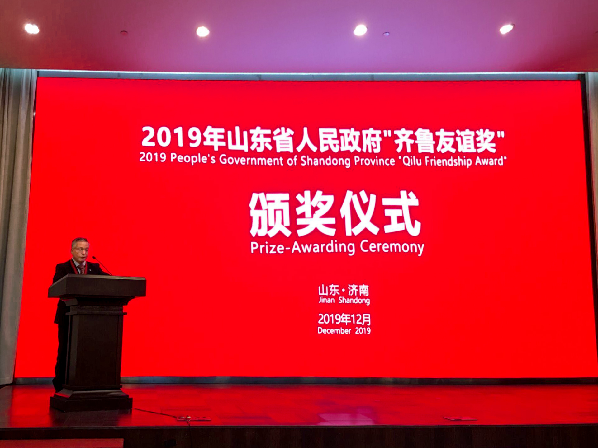 据了解,“齐鲁友谊奖”始设于1993年,是山东省人民政府为表彰外国专家在我省经济、文教和社会发展中作出的突出贡献而设立,是授予在鲁工作外国专家的最高奖项。今年获奖的20位专家活跃在山东医疗、教育、制造业等行业领域,在山东重大原始创新研究、产业发展升级、国际交流合作等方面做出突出贡献。