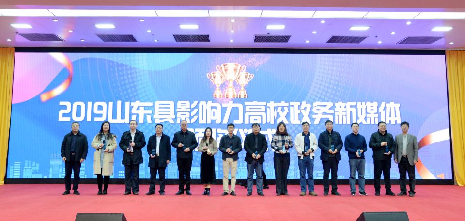 近日,由山东省互联网传媒集团主办的山东高校品牌建设与传播管理研讨会在临沂举行。会议现场发布了“2019年度山东最佳社会声誉高校”榜单与“2019年度山东最具影响力高校政务新媒体榜”榜单。山东省教育厅办公室调研员、新闻中心主任宋全政,省网媒集团党委常委、副总经理姜长勇出席活动并为获奖单位颁奖。我校同时获得“2019年度山东最佳社会声誉高校”、“2019年度山东最具影响力高校政务新媒体”两项奖励。