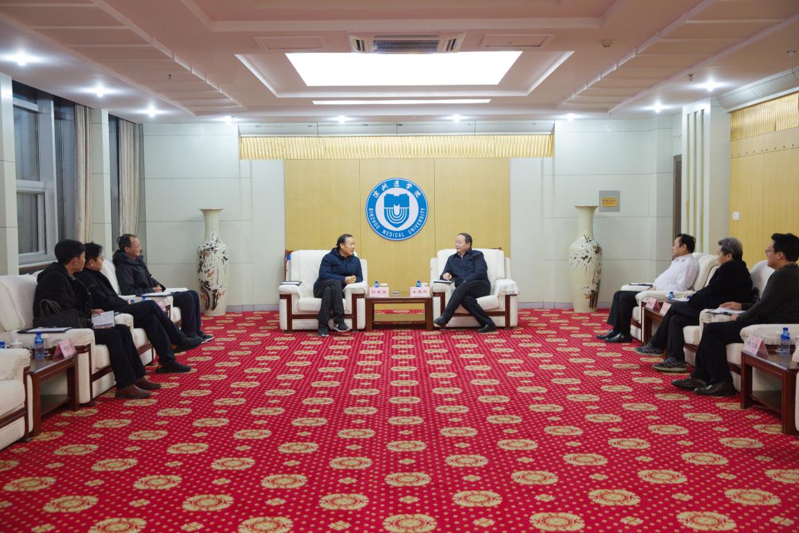 12月27日下午,省派潍坊寿光市稻田镇乡村振兴服务队队长、山东省水利厅二级巡视员高希星率服务队成员、山东省人大常委会办公厅二级调研员张立志,山东省调水中心东营分中心副主任、党委委员于德光,我校烟台附属医院纪检员辛先祥一行4人来我校座谈交流。党委书记车先礼,校党委委员、组织部部长周连顺在办公楼十楼接待室会见服务队一行。校办公室、烟台附属医院相关负责同志参加会见。