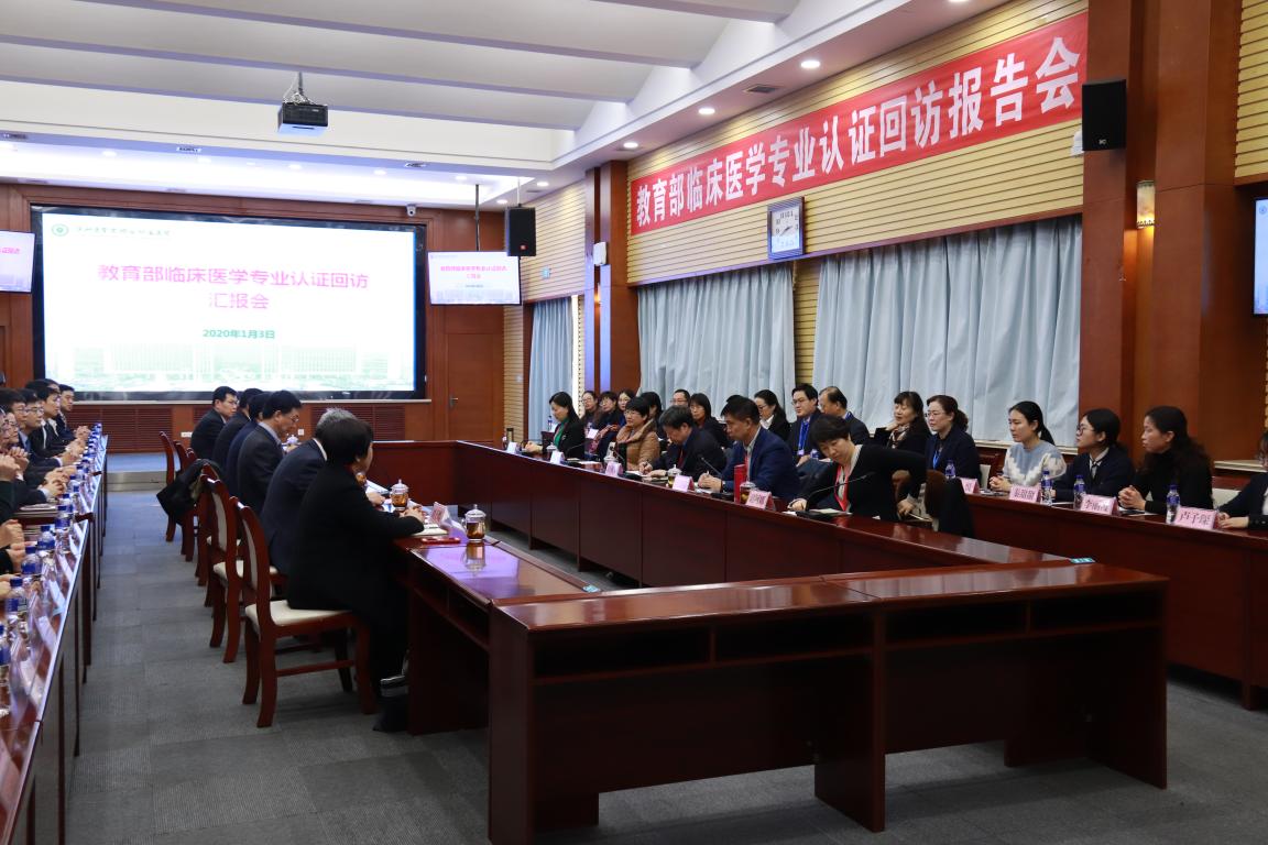 2020年1月3日-4日,由首都医科大学原校长吕兆丰教授担任组长,哈尔滨医科大学原副校长曹德品教授、浙江大学医学部教师发展中心执行主任俞方教授、北京大学医学部教育处副处长谢阿娜教授,首都医科大学全科医学与继续教育学院书记付丽教授为成员的教育部专家组莅临我校,对临床医学专业认证工作进行回访。
