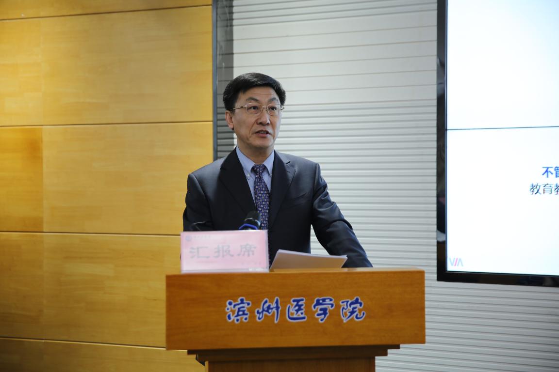 汇报会上,专家组组长吕兆丰教授代表教育部临床医学专业认证工作委员会讲话,党委书记车先礼致欢迎辞,院长王滨作临床医学专业认证回访工作汇报。