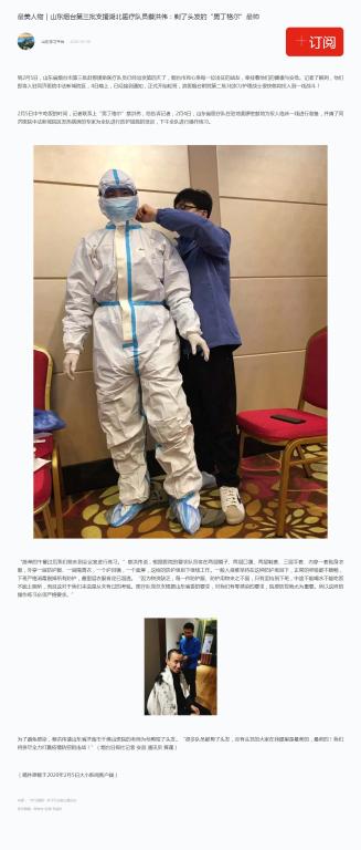 2月6日,学习强国以《最美人物|山东烟台第三批支援湖北医疗队员蔡洪伟:剃了头发的“男丁格尔”最帅》为题,报道了我校烟台附院第二批ICU护理战士的感人故事。