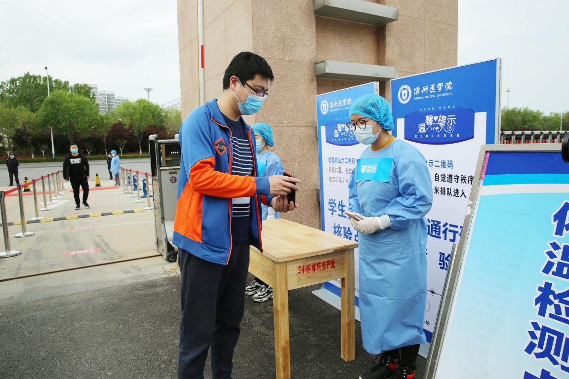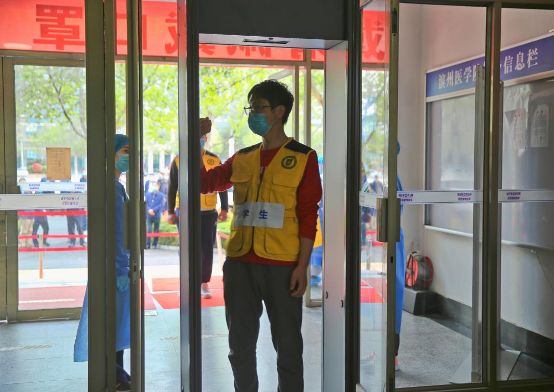 简短的动员后,学校根据《山东省高等学校突发新冠肺炎疫情应急处置办法》《滨州医学院突发新冠肺炎疫情应急处置办法》及相关文件要求,设定学生返校报到、教室上课、餐厅就餐、宿舍休息4个场景,完整模拟学生出现体温异常等情况时的应急处置程序。
