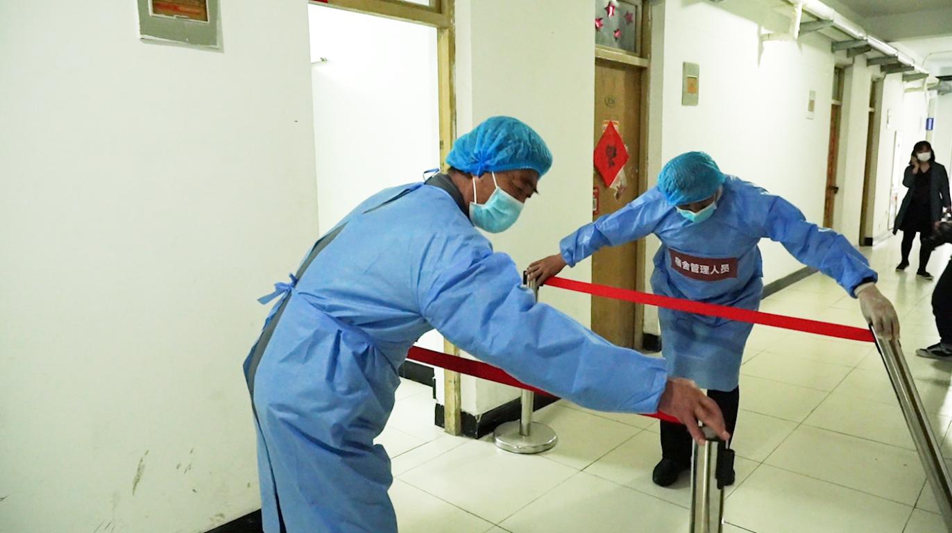 在宿舍休息环节,学生间隔2米排队进入宿舍,经过体温测量、信息核对合格后进入宿舍。体温异常学生第一时间报告辅导员,辅导员按照流程上报并赶到学生宿舍做好安抚。学院联络员通知留观转诊组对体温异常学生重测体温,确认异常后启动应急处置,并报告相关负责人送定点医院发热门诊排查。工作人员登记宿舍内其他成员信息,并对有关宿舍、本楼层公共区域进行消毒。