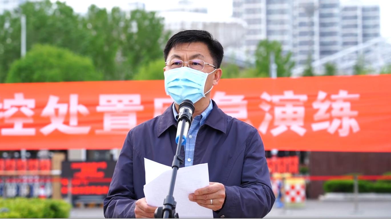 校领导车先礼、王滨、李文喜、白咸勇、吕长俊、王广成、孙祥军、周连顺、张玉龙出席演练。院长、学校疫情防控工作领导小组组长王滨作动员讲话。副院长、学校疫情防控工作领导小组副组长孙祥军主持演练。