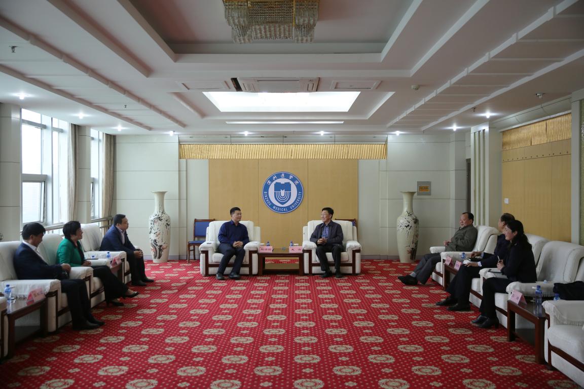 王滨代表学校对赵治国一行的到来表示欢迎,对医院多年来对学校实践教学工作的大力支持表示感谢,尤其对疫情期间医院开展的线上临床教学工作给予了充分肯定。他简要介绍了学校近年来的建设发展情况,重点介绍了学校学科专业特色和人才培养优势,以及学校积极对接新旧动能转换,加快教育教学综合改革的情况。他希望今后双方进一步加强交流与合作,推进医教协同、高质量发展,为培养高素质医学人才做出新的更大努力。