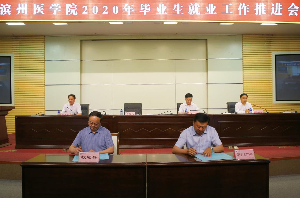 会上,车先礼代表学校与临床医学院、口腔医学院、护理学院、中西医结合学院、公共卫生与管理学院等院(系)代表主要负责人签订了2020年毕业生就业工作目标责任书。孙祥军传达了省委组织部等13部门关于做好2020年高校毕业生就业工作的通知、教育部办公厅关于进一步发挥高校辅导员作用助力毕业生就业创业工作的通知、全国全省高校毕业生就业创业工作视频会议等精神,通报了学校目前毕业生就业情况。