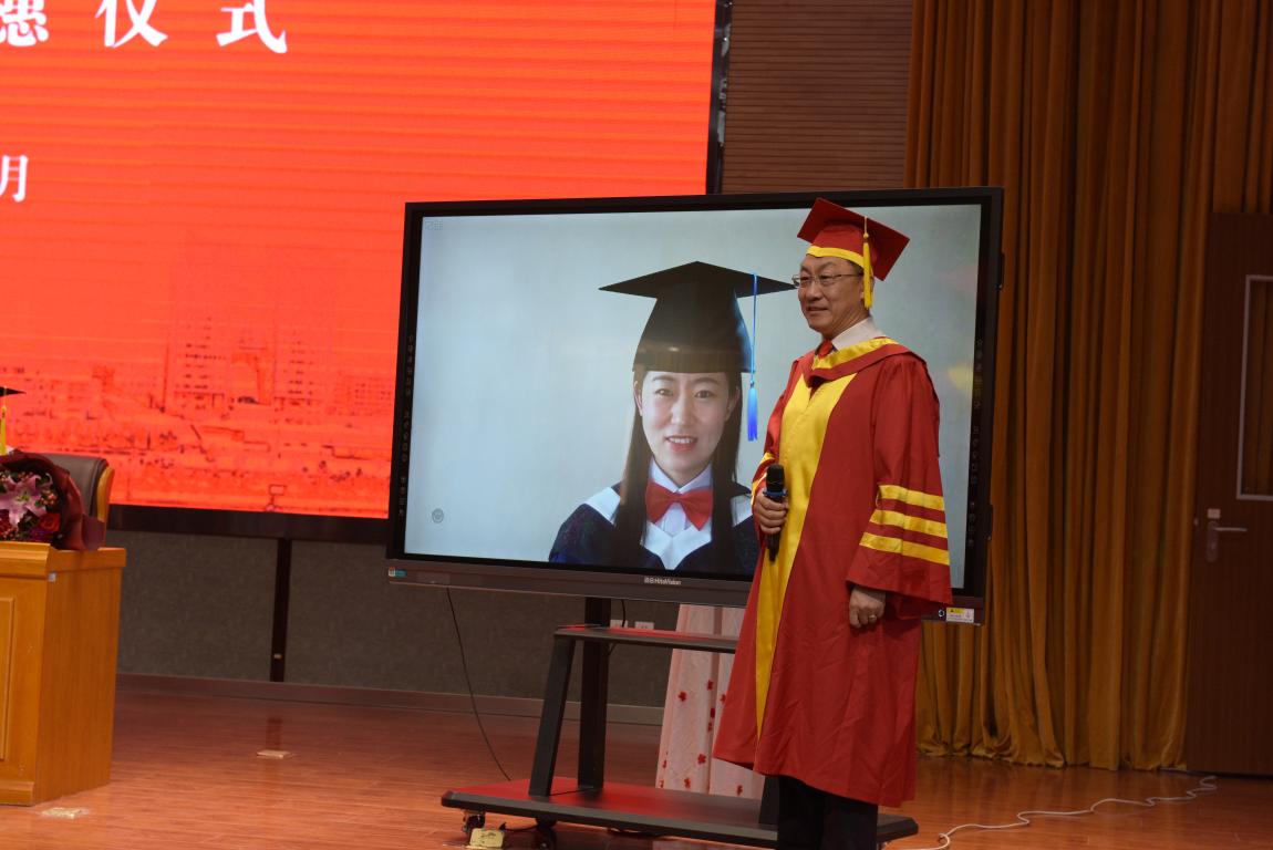 院长王滨为不在现场参加典礼的省外毕业生“云端”拨苏正冠