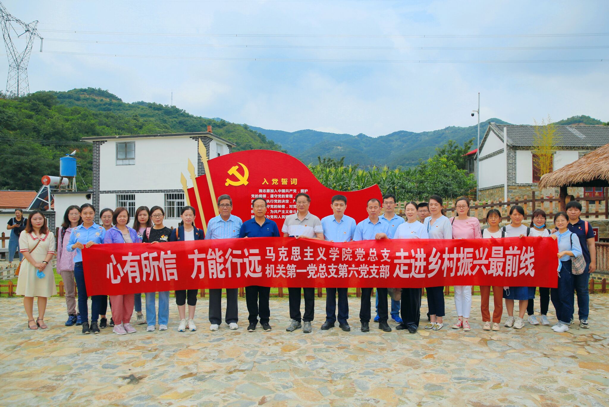 7月4日,马克思主义学院党总支、机关第一党总支第六党支部赴栖霞市亭口镇衣家村、复兴村,开展“心有所信、方能行远——走进乡村振兴最前线”主题党日活动,实地学习富民强村 “新时代愚公精神”,重温初心使命。校党委副书记李文喜以普通党员身份参加活动。校党委委员、党委宣传部部长、马克思主义学院党总支书记张玉龙主持党日活动。活动期间,李文喜一行看望慰问了省派乡村振兴驻栖霞亭口服务队成员、党委宣传部融媒体中心副科长崔岩同志。