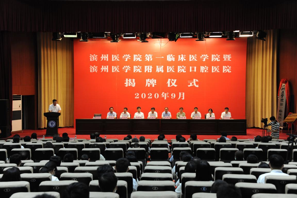 滨州市委办公室、滨州市卫健委领导,学校办公室、发展规划处、教务处、科学技术处、研究生处、实践教学管理处负责同志,滨医附院、第一临床医学院领导班子成员、各职能部门负责人,口腔医院领导班子成员,各教研室主任、辅导员、学生代表以及医护员工代表参加揭牌仪式。