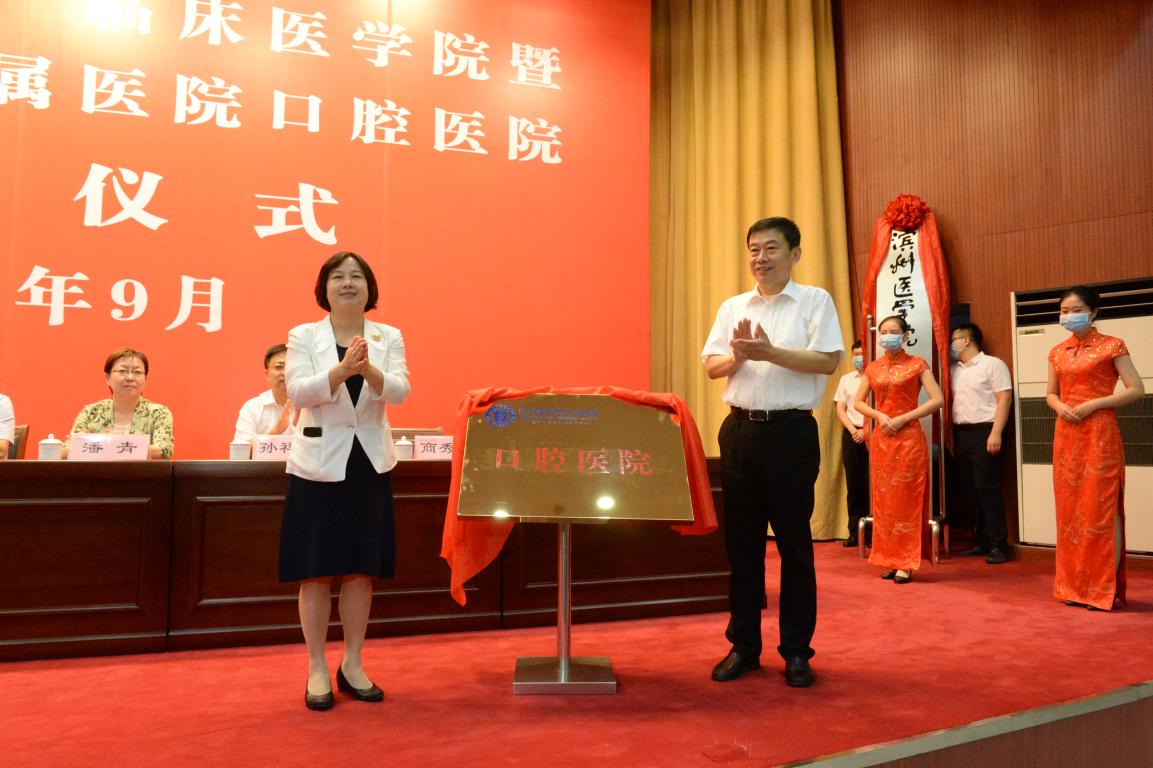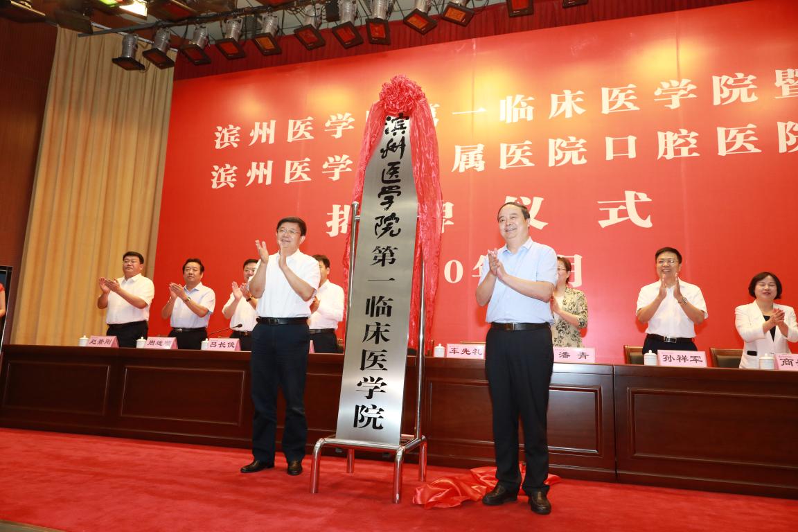 校党委书记车先礼和滨州市委书记、市人大常委会主任佘春明共同为滨州医学院第一临床医学院揭牌