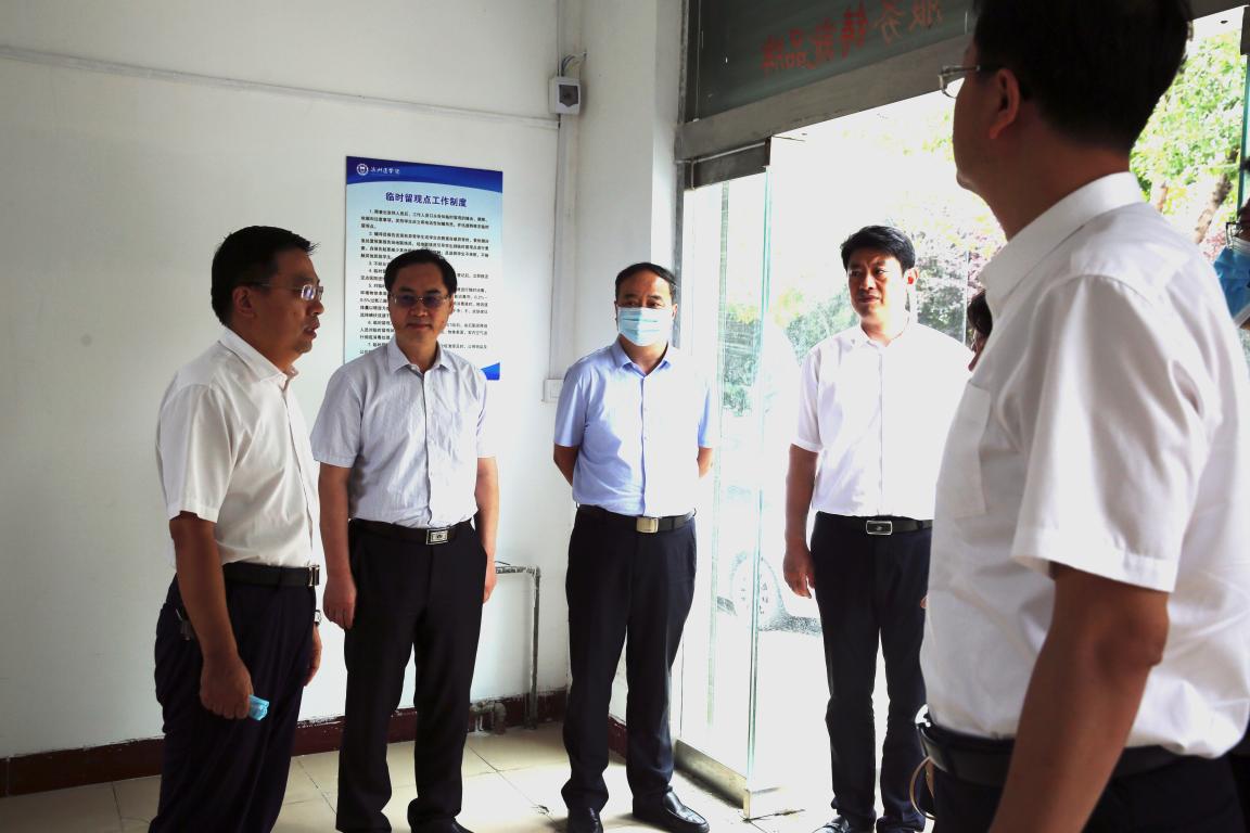 督导组现场查看了校门、食堂、宿舍、教室等人员密集区域,校园防控物资储备、隔离场所设置等疫情防控准备工作,对我校常态化疫情防控和秋冬季疫情防控准备工作给予充分肯定,并就进一步扎实做好常态化疫情防控工作提出要求:一要高度重视,定时检测、汇报师生健康状况,严格实行“日报告”和“零报告”制度;二要严格管理,加强对师生监督和提醒,切实把疫情防控工作做实做细,对于突发情况要快速反应、妥善应对。三要充分准备,备足备齐防疫物资,做好校园消杀工作,加强校门管控、出入登记、体温检测,筑牢校园安全防线,全力保障学校各项工作有序开展。