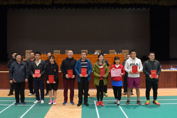 本次羽毛球比赛共设立团体赛,校、院级领导羽毛球双打比赛,羽毛球双打比赛,男子单打,女子单打等5个项目。经过小组循环和淘汰赛,最终,滨州医学院附属医院一队、滨州医学院一队、烟台市毓璜顶医院代表队分别获得羽毛球团体比赛冠、亚、季军;滨州医学院吕长俊、李滨,滨州附属医院范万峰、成苗青,滨州医学院王东、马振宾分别获得校、院级领导羽毛球双打比赛冠、亚、季军;滨州医学院附属医院一队毛雪梅、滨州医学院院二队王静一、滨州医学院附属医院二队宋茜分别获得女子单打比赛冠、亚、季军;滨州医学院附属医院一队成苗青、滨州医学院一队张楠、烟台市毓璜顶医院王辉分别获得男子单打比赛冠、亚、季军;毓璜顶医院郑世财、王光达,滨州医学院杨忠、赵豹猛,滨州医学院杨焕海、王秀花分别获得羽毛球双打比赛冠、亚、季军。
