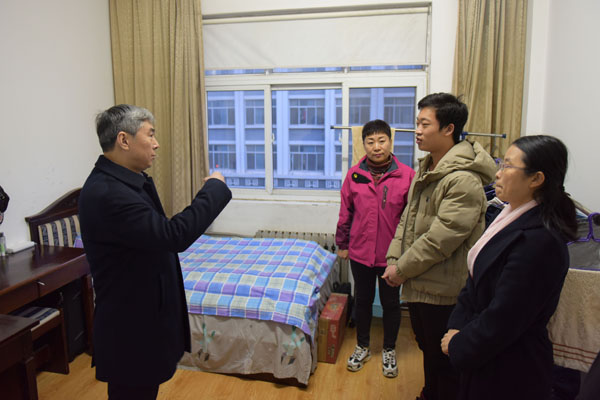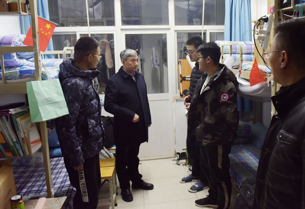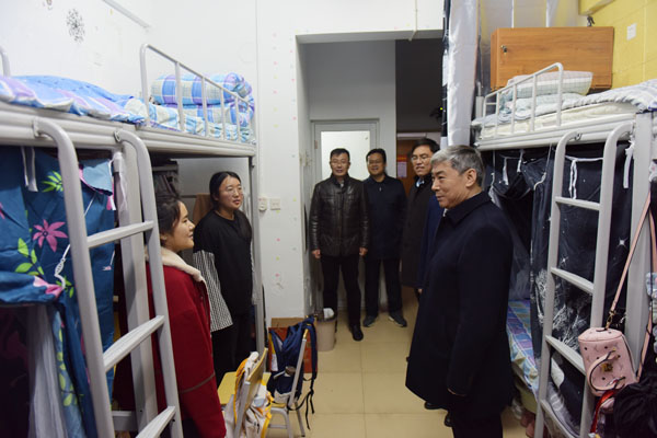 11月27日下午,院长赵升田在校办公室、学生工作处、后勤管理处负责同志的陪同下,深入学生宿舍开展调研工作。