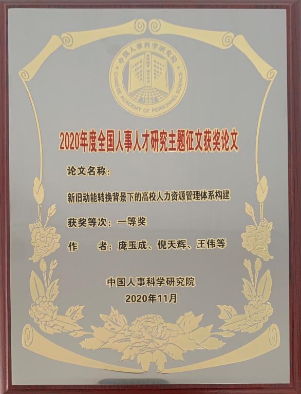 近日,由中国人事科学院组织的2020年全国人事人才研究主题征文评选结果公布,我校人力资源处庞玉成、倪天辉、王伟、张德海撰写的《新旧动能转换背景下的高校人力资源管理体系变革》喜获一等奖。