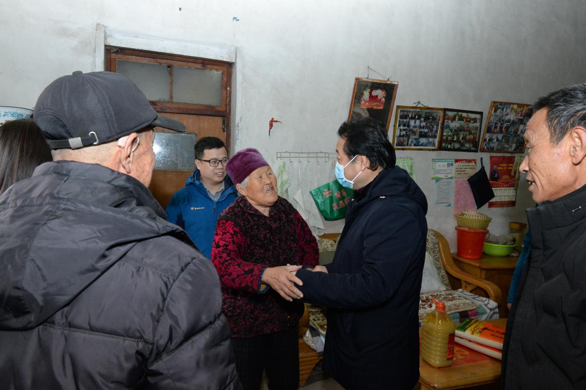 捐赠仪式后,周连顺一行分别来到村堤圈、枣园、郭王、白家四个省定贫困村,开展送“温暖”活动,向帮包村14名80岁以上贫困残疾老人送去食用油、大米、棉被等慰问品。