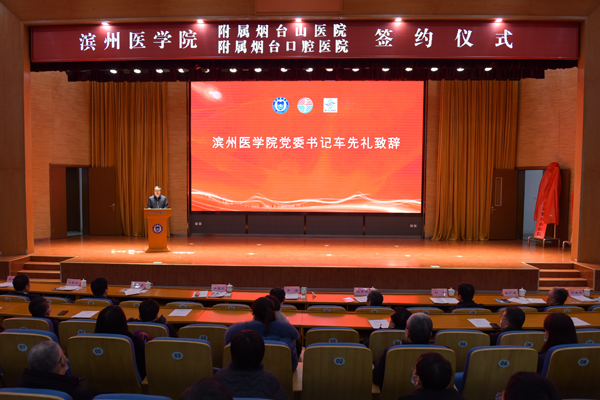 车先礼在致辞中指出,长期以来,市委市政府高度重视学校的建设发展,持续给予政策及资金支持,破除学校改革发展进程中的困难短板,扎实推进校地协同融合,推动学校事业迈入了高质量发展的轨道。尤其是在今年8月25日,省市共建滨州医学院合作备忘录和校地共建协议签署,省教育厅与烟台市人民政府携手发力,共同助推滨州医学院“十四五”期间更名医科大学,创建博士学位授予单位,并决定将烟台山医院、口腔医院纳入我校直属附属医院管理。协议签署以来,全校广大师生医护员工,备受鼓舞、干劲倍增,干事创业,担当作为,学科专业、人才队伍、科学研究、平台建设等方面都呈现出又好又快的发展势头。此次烟台山医院、口腔医院纳入学校直属附属医院管理,是市委市政府高瞻远瞩的战略谋划,是校地院各级领导审时度势的科学布局,是合作共建落地落实的“奋进之笔”,为校院强强联合、跨越发展再添重要机遇,注入强劲动能。他表示,学校将会以一家人的胸怀、一家人的态度、一家人的氛围,在医教协同创新、教育教学改革、学科专业建设、人才队伍建设、学术平台建设等方面深度融合、同频共振,共筑学术共同体、价值共同体和命运共同体,推动学校和医院高质量发展行稳致远。他希望学校和医院全体医护教职员工,在市委市政府的大力支持下,凝心聚力、和衷共济,打造烟台医学教育和医疗卫生事业融合发展新品牌,构筑医学人才培养、医学科学研究和医疗卫生事业发展新高地,为“健康山东”“健康烟台”和全市经济社会发展,开启新征程,构建新格局,谱写新篇章。