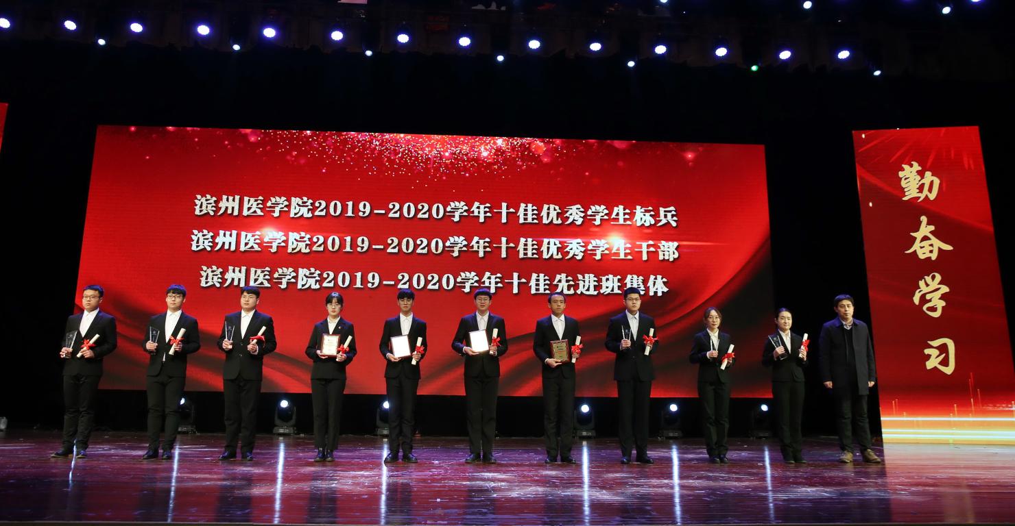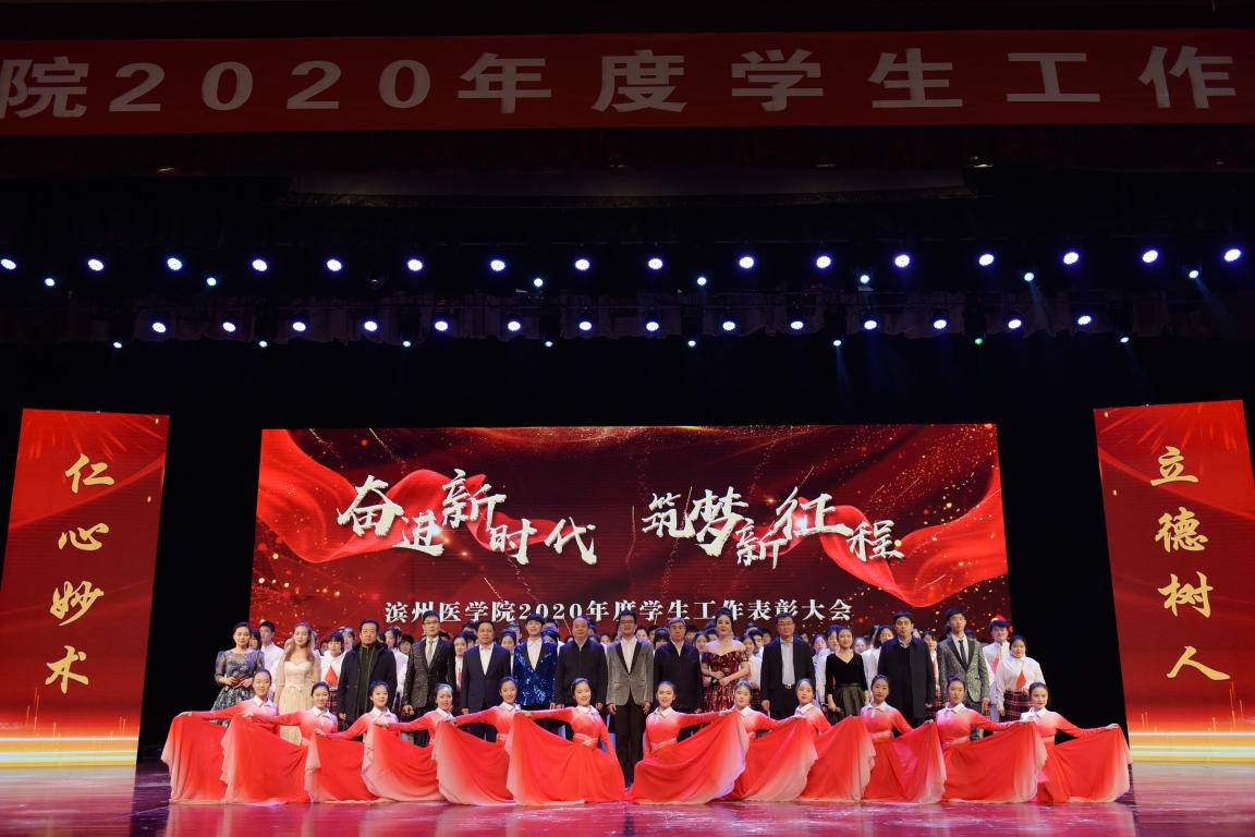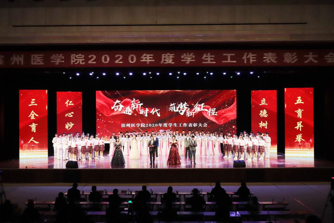 大会在舞蹈《盛开》中拉开帷幕。通过《滨州医学院2020年学生工作巡礼》短片,全面回顾总结了2020年在学生教育管理服务方面工作情况和成效。表彰颁奖环节分三个篇章进行,每个篇章穿插视频回顾和节目表演。在“初心永挚·绘华章”篇章,生动呈现了各院(系)特色育人工作,并对2020年度大学生主题教育活动品牌优秀单位、学风建设“创优工程”优秀单位和特色育人专项工作先进单位进行了表彰。在“匠心至臻·育新人”篇章,全面展现了辅导员队伍精神风貌和建设成效,并对山东高校辅导员领航工作室、山东高校优秀辅导员、校级辅导员工作室、辅导员省级比赛获奖、首届十佳辅导员、就业工作先进个人进行了表彰。在“潜心求知·树典范”篇章,充分展示了优秀学子风采,并对国家奖学金、省政府奖学金、校长奖学金、省级荣誉称号、十佳优秀系列获得者进行了表彰。