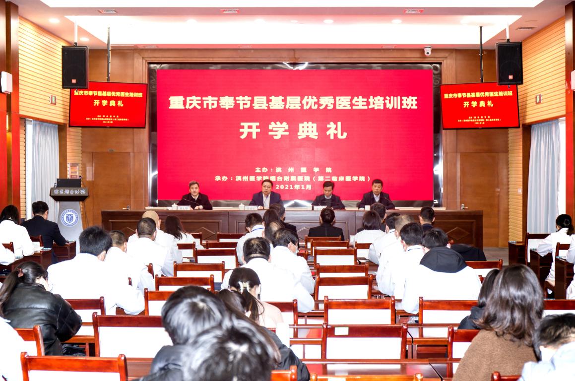 1月4日上午,重庆市奉节县基层优秀医生培训班开学典礼在我校烟台附院(第二临床医学院)门诊六楼报告厅举行。副院长孙祥军、重庆市奉节县卫健委主任余立金分别讲话,医院(学院)党委书记刘大华致辞。医院(学院)全体领导班子成员以及授课专家教授、培训班全体学员等60余人参加开班典礼。医院(学院)院长王强主持典礼。