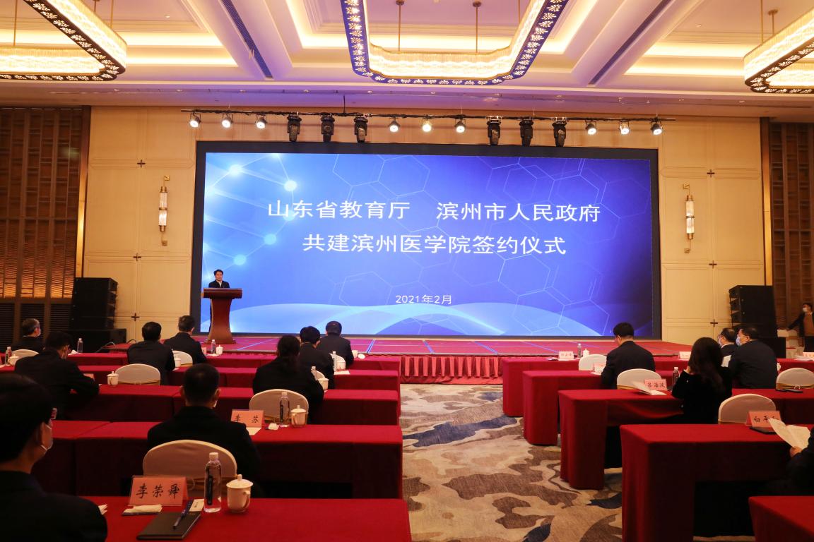 2月6日下午,山东省教育厅、滨州市人民政府共建滨州医学院签约仪式在济南举行。省教育厅与滨州市人民政府签署共建滨州医学院合作备忘录,滨州市人民政府与滨州医学院签署加快滨州医学院滨州校区发展共建协议书,省市校三方协同发力,推动学校“十四五”事业和区域高等教育、经济社会高质量发展。