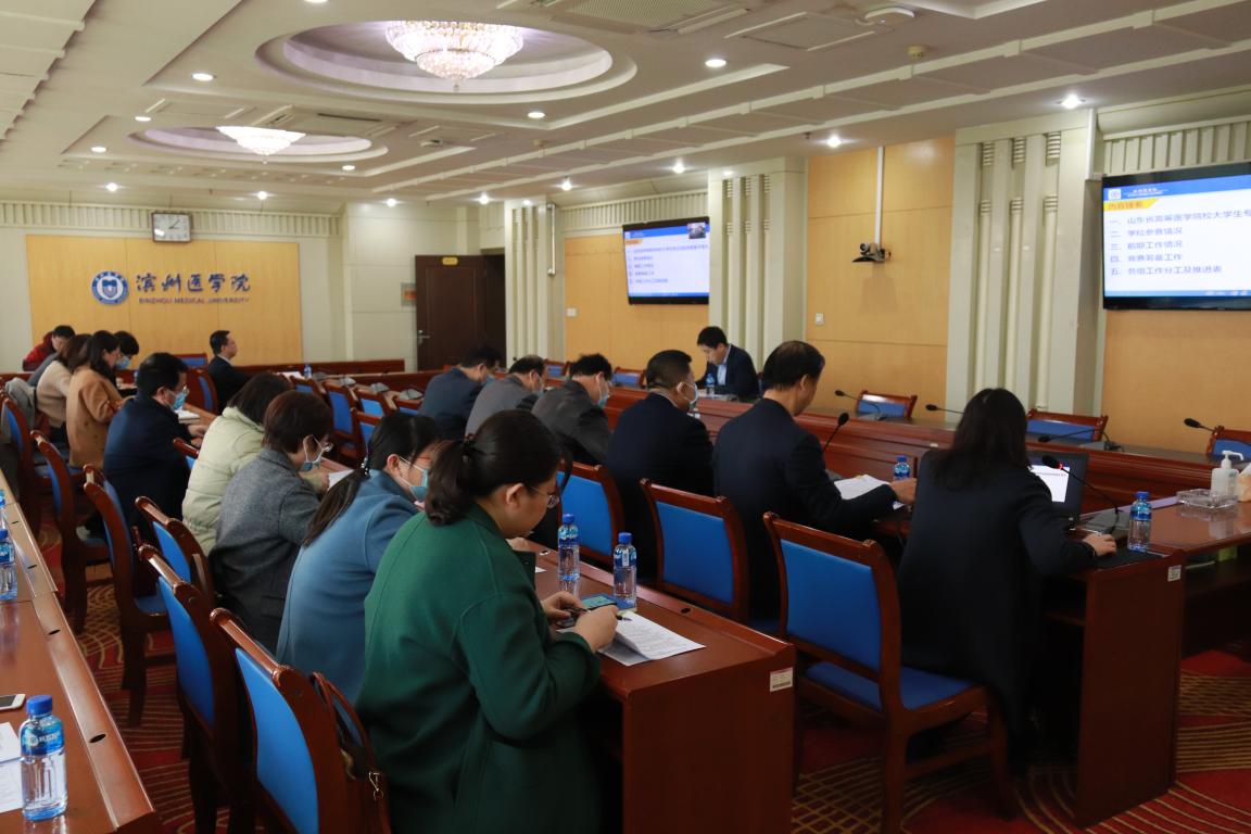 3月16日下午,学校在烟台、滨州两校区同步召开专题会议,调度协调2021年山东省高等医学院校大学生专业技能竞赛筹备工作。党委委员、党委宣传部部长张玉龙出席会议并讲话。10个相关职能部门、5个相关院(系)的负责同志参加会议。