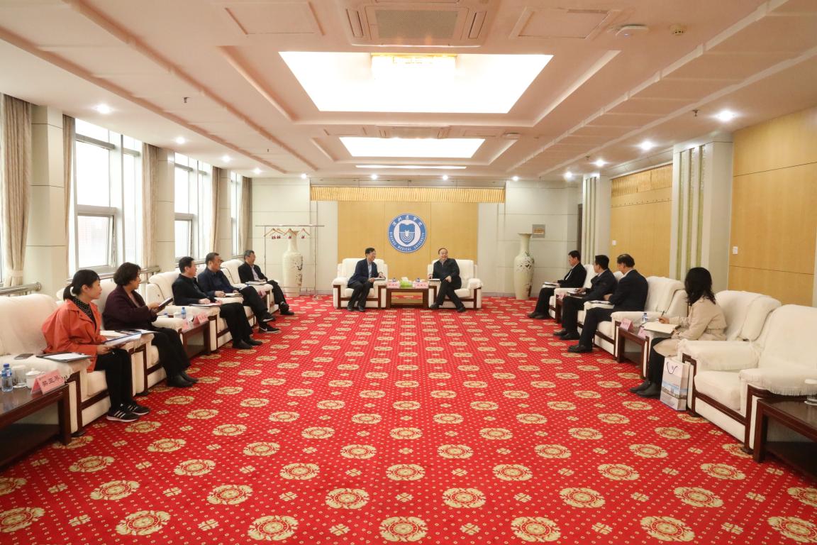 4月2日上午,郓城县人民医院党委书记李庆利一行6人来校访问交流。党委书记车先礼会见李庆利一行。校办公室、研究生处、实践教学管理处有关同志参加会见。