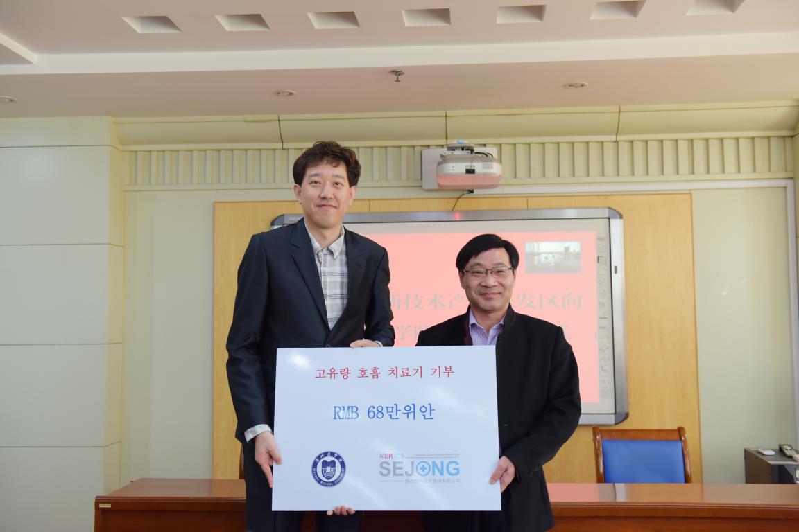 据了解,烟台世宗医疗器械有限公司2016年2月注册成立,2019年入驻烟台高新区中韩烟台产业园。公司主要进行呼吸机及相关零部件的研发、生产和销售,投资公司韩国 MEKICS Co.,Ltd为韩国唯一掌握远程呼吸治疗技术的先进企业,主要从事研发生产医疗用人工呼吸机、患者监视机器、氧气饱和度检查仪,是亚洲唯一的从新生儿到成人患者人工呼吸机治疗全领域产品制造公司,掌握呼吸疾病治疗5大核心技术。以此次捐赠为契机,校、政、企三方签署合作协议,按照“平等互利、优势互补、长期合作、共同发展”的原则,发挥各自的优势和特点,加快推进资源共享,创新产学研合作模式,不断拓展合作领域,对于进一步推进学校医教研产学研结合、提升应用成果转化能力,促进捐赠企业科技研发和快速发展,促进高新区打造医养健康产业集群,激发区内企业发展活力等具有现实意义和推动作用。