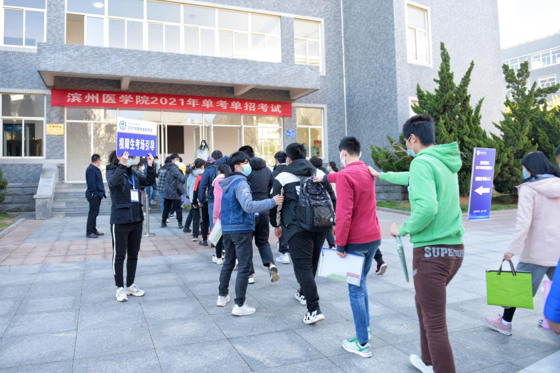 “周到服务无止境,为保障2021年单考单招考试顺利进行,学院组织安排50余名志愿者协助做好视障生和听障生入校、入考场工作,并提前进行路线规划,做好演练彩排,确保同学们考试安全顺畅,还专门安排手语志愿者为听障考生解答疑惑,希望用我们的细心、贴心和用心换同学们顺心参加在滨医的考试。”特殊教育学院书记崔保华说。