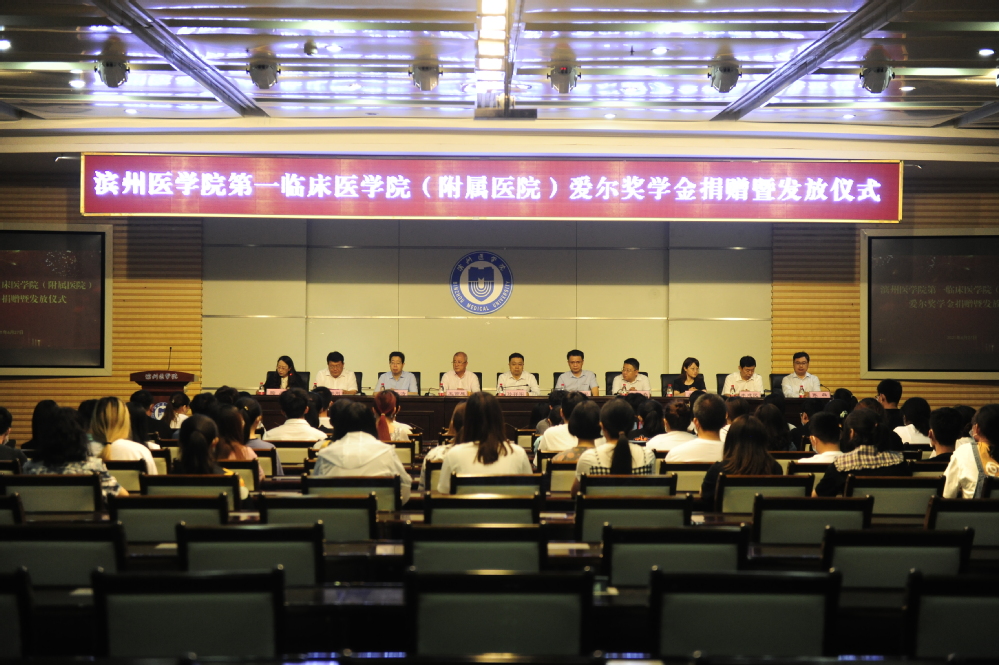 6月27日上午,学校在办公楼六楼报告厅举行爱尔奖学金捐赠暨发放仪式。副院长孙祥军,爱尔眼科医院集团山东区CEO包楼军,烟台爱尔眼科医院院长王首雁、副院长康烨出席仪式并为学生颁奖。第一临床医学院(滨医附院)党委书记赵景刚主持仪式,学工处、财务处、第一临床医学院相关负责同志及近百名学生代表参加仪式。