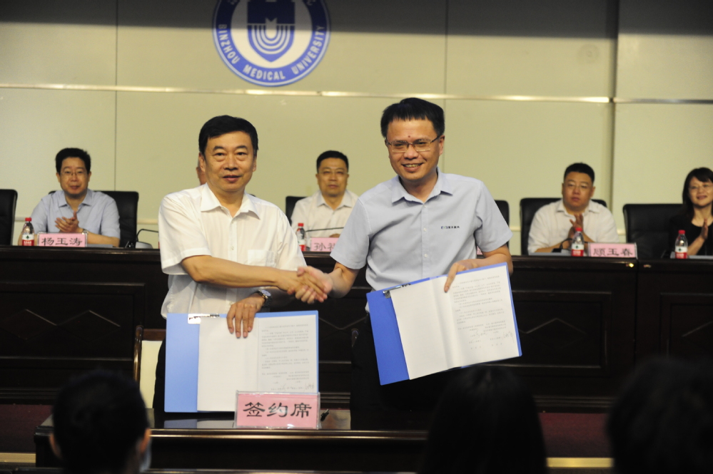 第一临床医学院(滨医附院)院长李建民代表学院接受捐赠,与包楼军共同签署捐赠协议书,并向包楼军颁发捐赠证书。