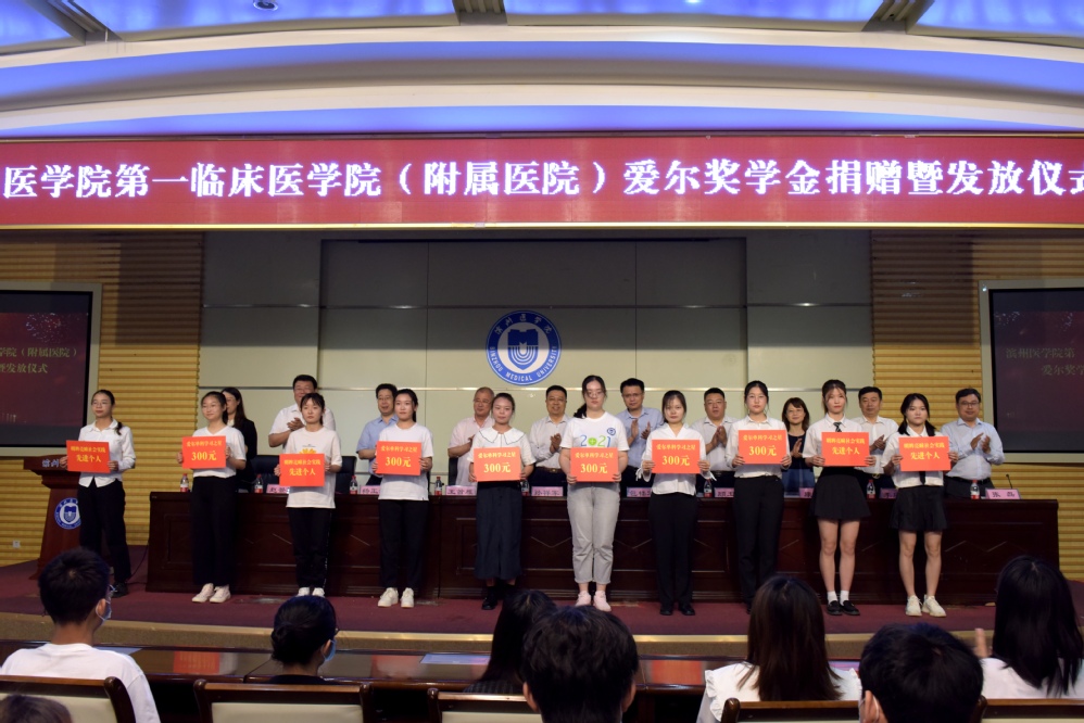 据了解,爱尔眼科医院集团是一家上市的民营专科医院集团,也是我校眼视光专业学生的实习基地。爱尔眼科医院集团秉承“支持医学教育事业发展、促进眼视光专业学生成长成才”的理念,与第一临床医学院达成奖学金捐赠意向,自2021年至2025年每年向学院捐赠奖学金十万元。根据《滨州医学院第一临床医学院爱尔奖学金管理办法》,本年度8名考取研究生的同学获爱尔研究生奖学金, 4名同学获爱尔学习之星奖学金,30名同学获爱尔单科学习标兵奖学金,28名同学获明眸亮瞳社会实践先进个人荣誉称号。