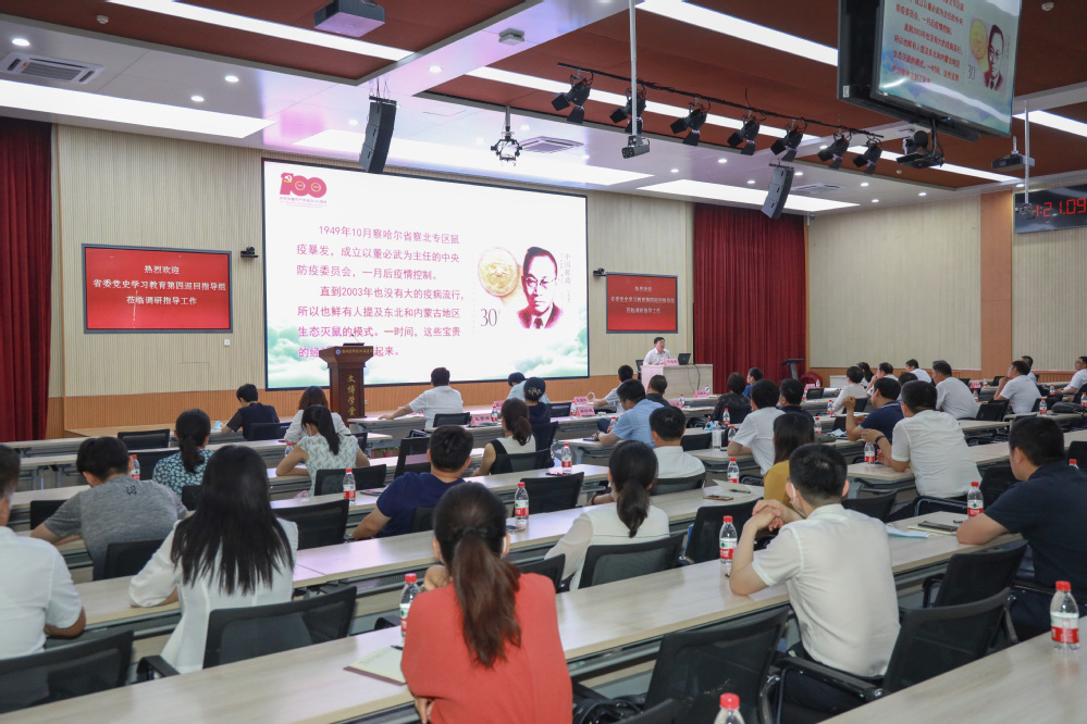 王德水一行在滨州校区文博学堂首先听取了吕长俊副院长的专题党课。吕长俊以《中国共产党领导下的百年医疗发展史》为题,详细讲解了在中国共产党领导下,党的医疗卫生事业发展历程,通过一个个典型事例、一个个典型人物的介绍,深刻阐述了党的医疗卫生事业一切为了人民健康的初心和使命,讴歌了一代代医护人员敬佑生命、救死扶伤、甘于奉献、大爱无疆的崇高职业精神。吕长俊在党课中指出,通过党史学习教育,充分认识到党的领导始终是战胜一切艰难险阻的“关键核心”,坚持和发展社会主义制度始终是实现强国复兴的根本之路,依靠和发动人民群众始终是一切工作的“制胜法宝”。