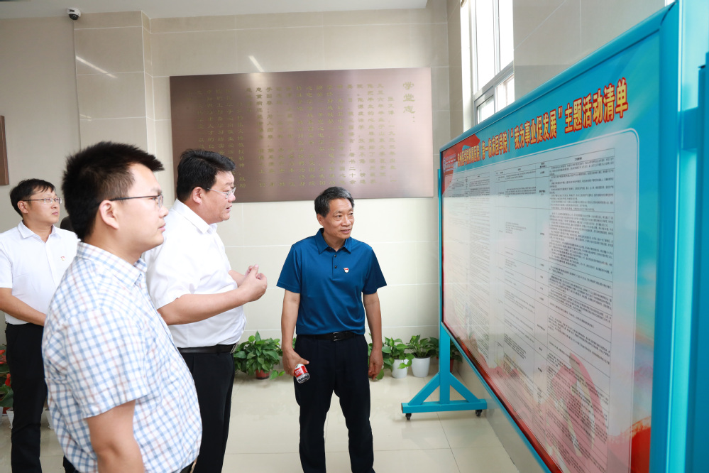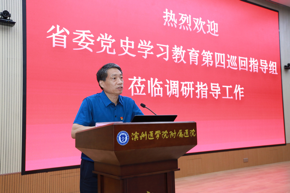 7月2日,省委党史学习教育第四巡回指导组成员王德水、袁星辉一行到滨州校区调研指导党史学习教育工作。校党委委员、副院长吕长俊,校党委委员、党委宣传部部长张玉龙,第一临床医学院(滨州附院)院领导,中层党员干部,各总支书记、支部书记、支部委员等陪同调研指导。