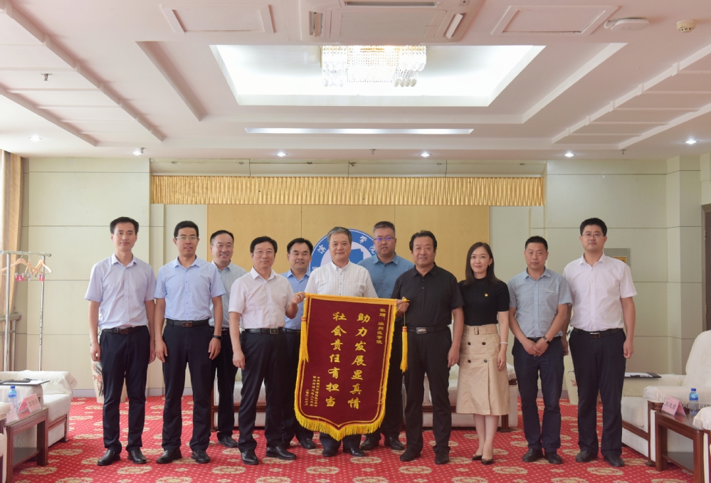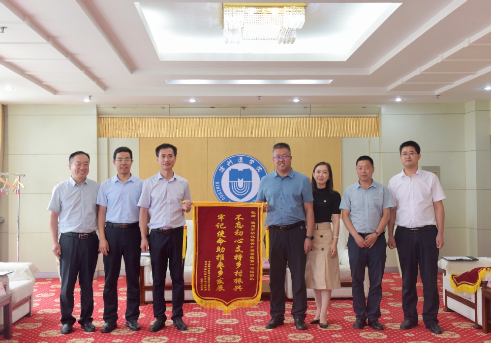 会上,滨州市沾化区委、区政府为滨州医学院赠送“助力发展显真情 社会责任有担当”锦旗;滨州市沾化区黄升镇党委、政府为“第一书记”团队赠送“不忘初心支持乡村振兴 牢记使命助推枣乡发展”锦旗。