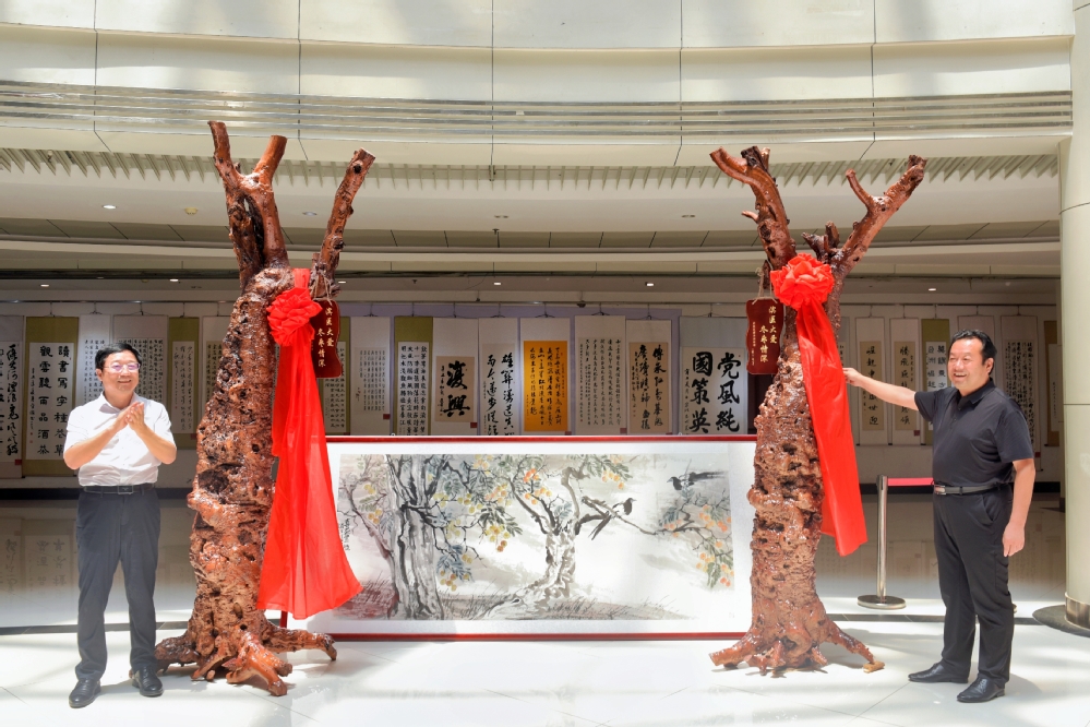 会后,校党委委员、组织部长周连顺与滨州市沾化区委常委、组织部长郭俊峰在办公楼一楼大厅对赠送我校的300多年“亲情枣树”以及“喜获丰收”字画进行揭幕仪式。双方表示,将继续开展更深层次和更广泛领域的交流与合作、携手并进,为健康山东发展贡献力量。