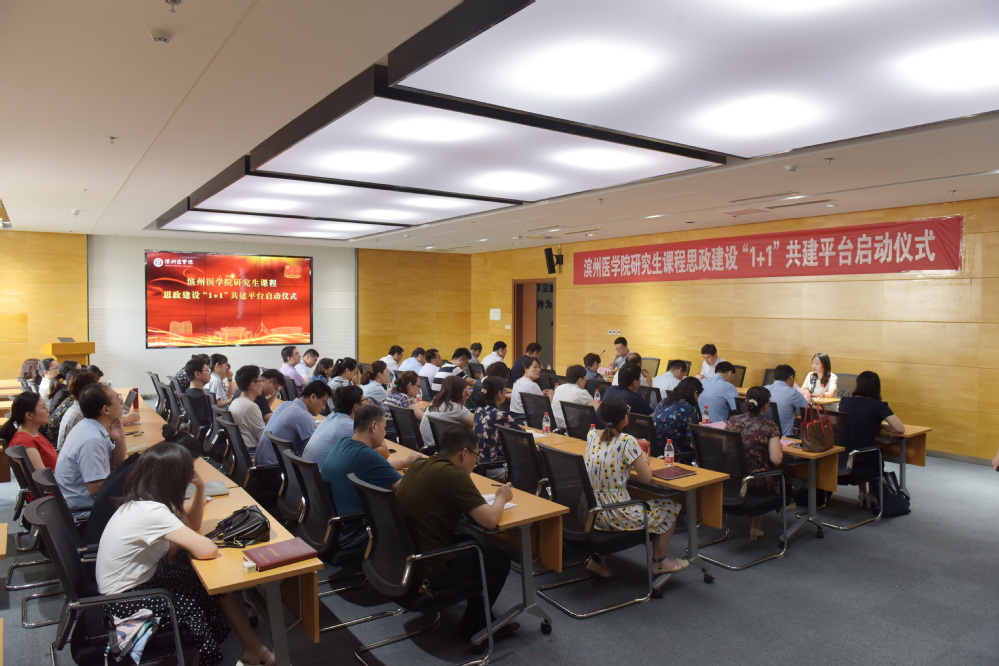 7月23日上午,滨州医学院研究生课程思政建设“1+1”共建平台启动仪式在荣祥楼216室隆重举行。校党委委员、党委宣传部部长张玉龙出席启动仪式并讲话。研究生处负责人、各教学单位负责人、马克思主义学院思政课教师及各研究生课程授课教师参加启动仪式。