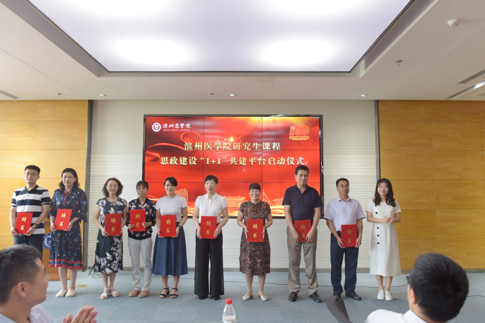启动仪式上,研究生处处长田梗宣读了《滨州医学院全面推进研究生课程思政建设工作方案》,并举行了“1+1”共建平台授牌和指导教师聘任仪式。启动仪式后,山东大学(威海)吴文新教授做了题为《“大思政”视域下的课程思政》的报告,我校马克思主义学院张桂芝教授做题为《课程思政润物无声》的思政经验分享。