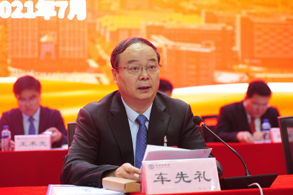 车先礼在致辞中指出,召开第七届教职工代表大会暨工会会员代表大会,是学校政治生活中的一件大事,也是广大教职医护员工参与民主管理、共商发展大计的一次盛会,对推动学校事业发展必将产生积极和深远的影响。近年来,在各级领导班子和全体教职医护员工的共同努力下,全校上下以习近平新时代中国特色社会主义思想为指导,认真学习贯彻党的十九大和十九届历次全会精神,全面贯彻党的教育方针,坚持立德树人根本任务,遵循高等教育办学规律,围绕“1345”的办学方略和目标任务,强化内涵建设,突出特色发展,激发创新活力,聚力提质增效,不断追赶超越,各项事业取得长足发展。“十四五”时期,学校将继续深入学习贯彻习近平新时代中国特色社会主义思想,科学研判“教育强国”“健康中国”背景下医学教育和卫生健康事业发展的新变化,紧密对接区域经济社会发展战略部署和实际需求,全面分析总结学校“十三五”以来改革发展成果、经验和面临的形势,围绕“1345”的办学方略和目标任务,以创新与发展为总基调,以立德树人为根本任务,以推进高质量发展为主线,以服务国家战略和区域经济社会发展为动力,以省市共建为新起点,以实现更名大学、获得博士学位授予权、构建“两优两特”办学格局为目标,在建设优势突出、特色鲜明高水平医科大学的进程中迈出更加坚实的步伐。